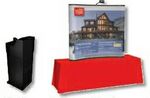 Fantastic event tool... use as a portable billboard at any type of event including a convention or tradeshow... or use as a movie screen or screen for projection television used in conjuction with dvd player to play movie at event or your advertising message which can be looped to replay over and over... Portable, light weight, easy to put together, reusable and very attention grabbing.... Call 1.866.666.1993 for more information and pricing. Can be totally customized to with your logo, company colors and more...