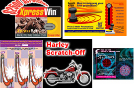 A few of our customizable web games include, online scratch off games - $2500 Scratcher Xpress Win and Harley Scratch off, EPlay Clings - Play to Win and Downhill Slope, and Online game with printed pieces - Prize O' Meter and Online Therometer Game, plus Blue Reveal Online Game called Discover.
