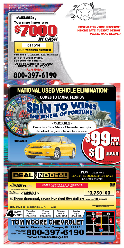 SCRATCH OFF TRIFOLD POSTCARD SELF-MAILER